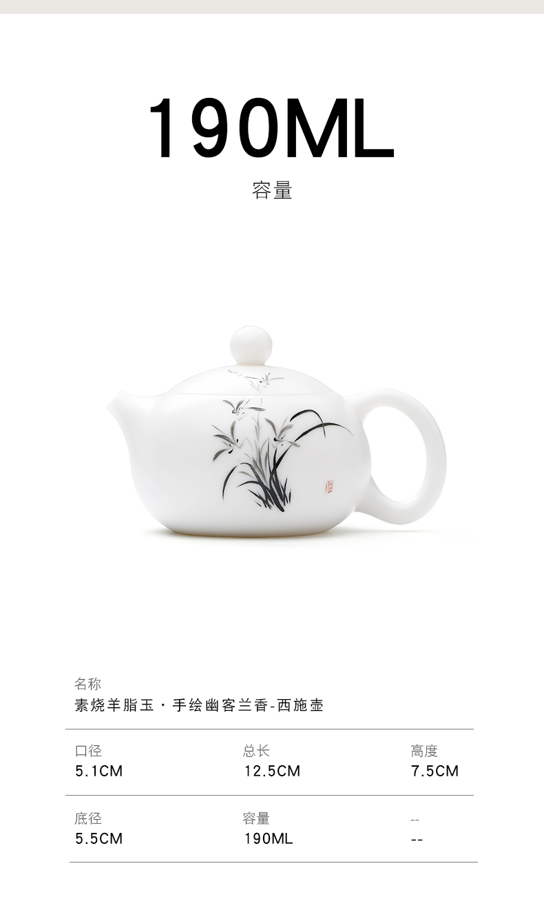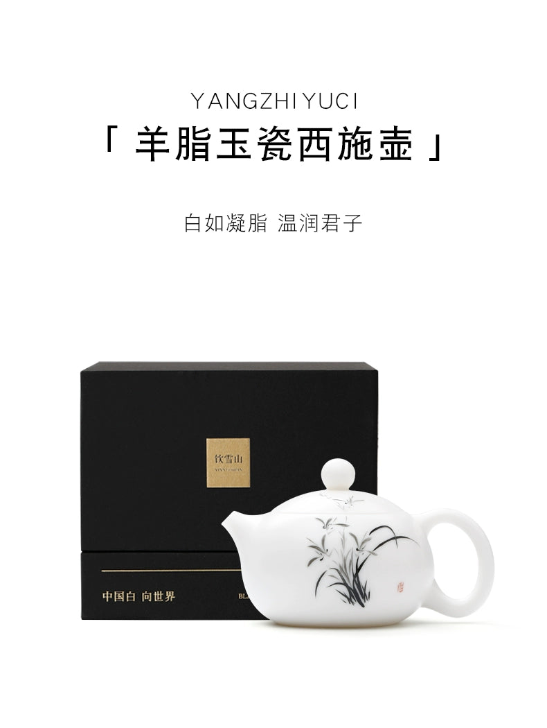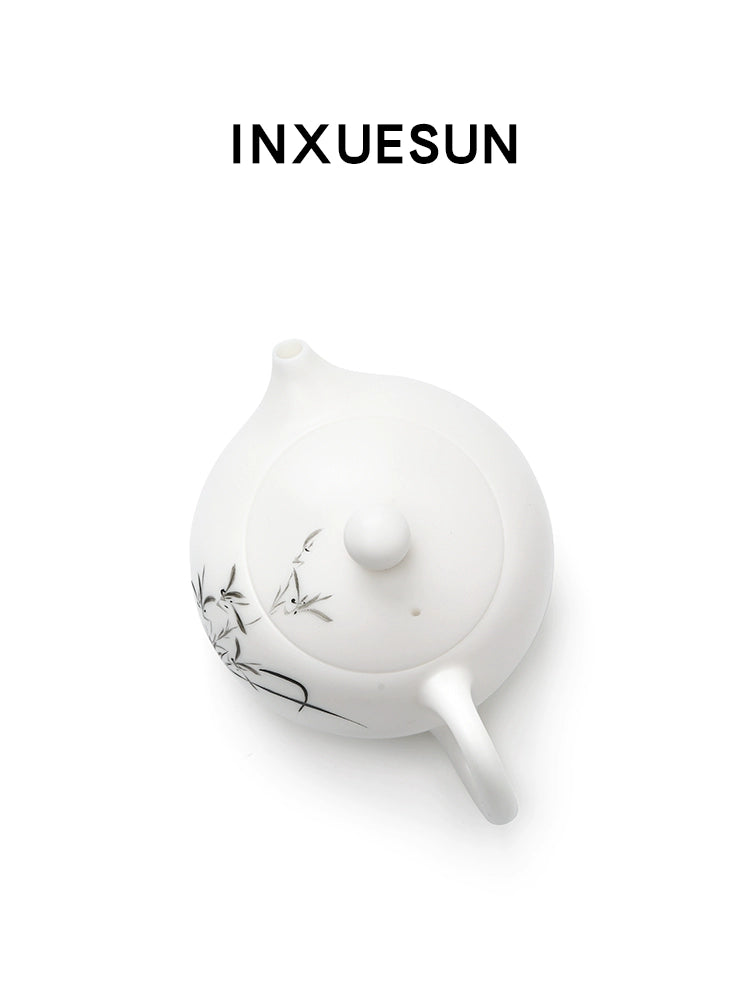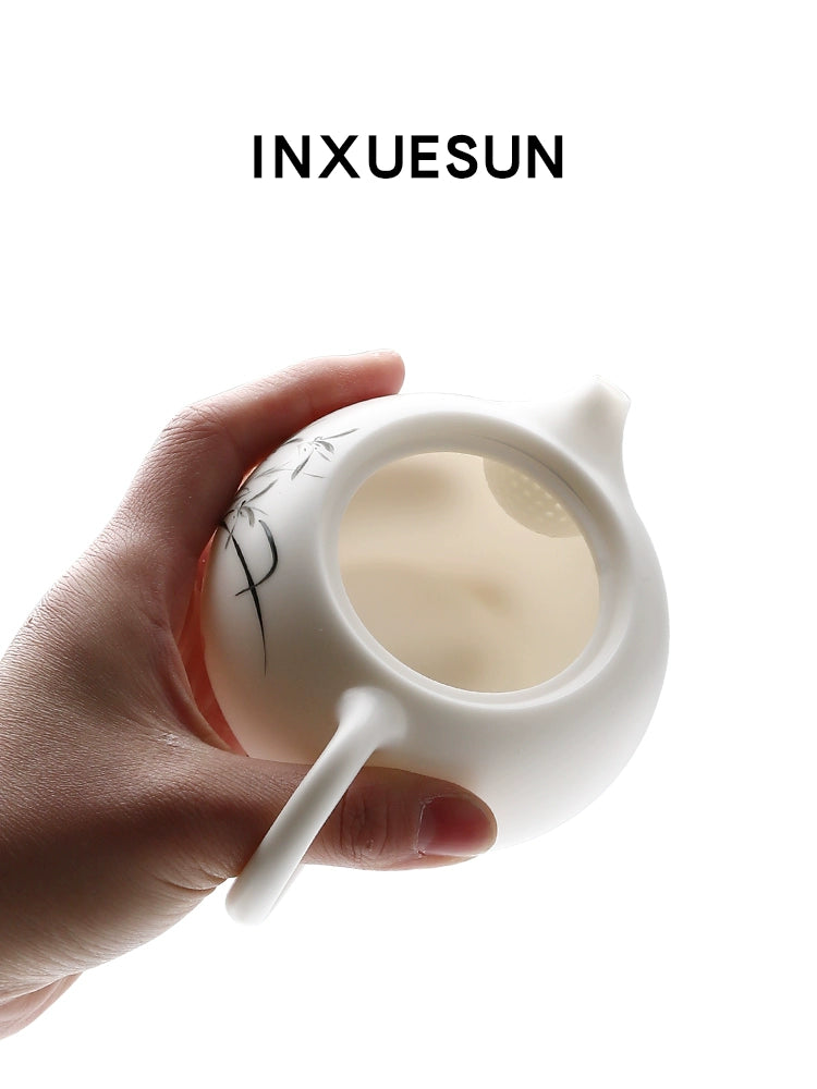 • Hand-painted plain-fired suet jade white porcelain Xishi teapot, single ceramic brewing teapot, high-end gift box for leaders and friends