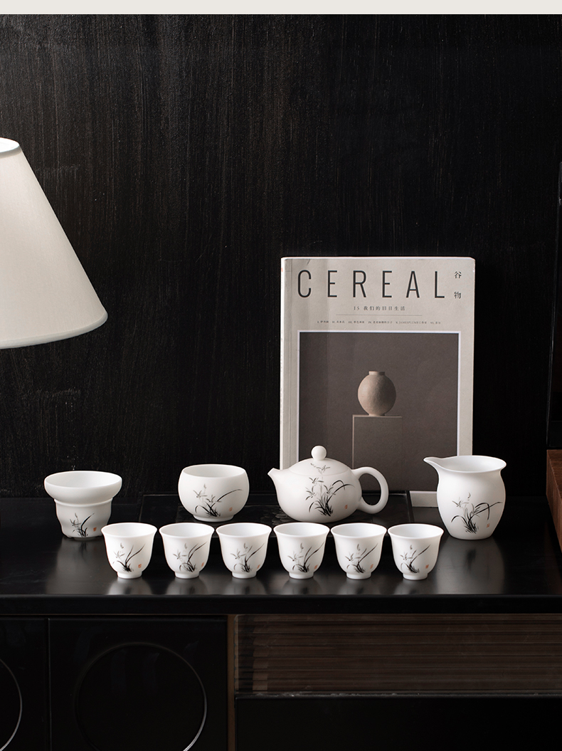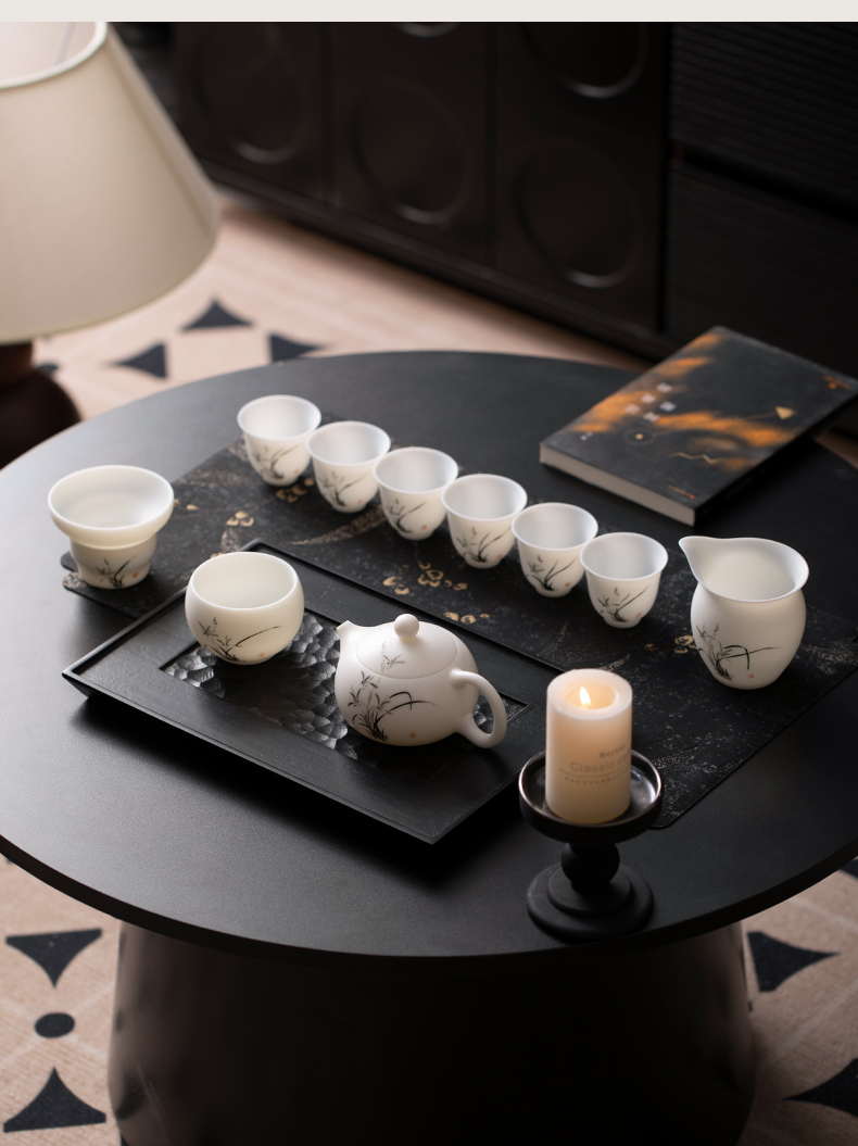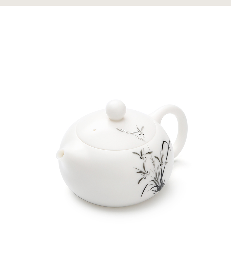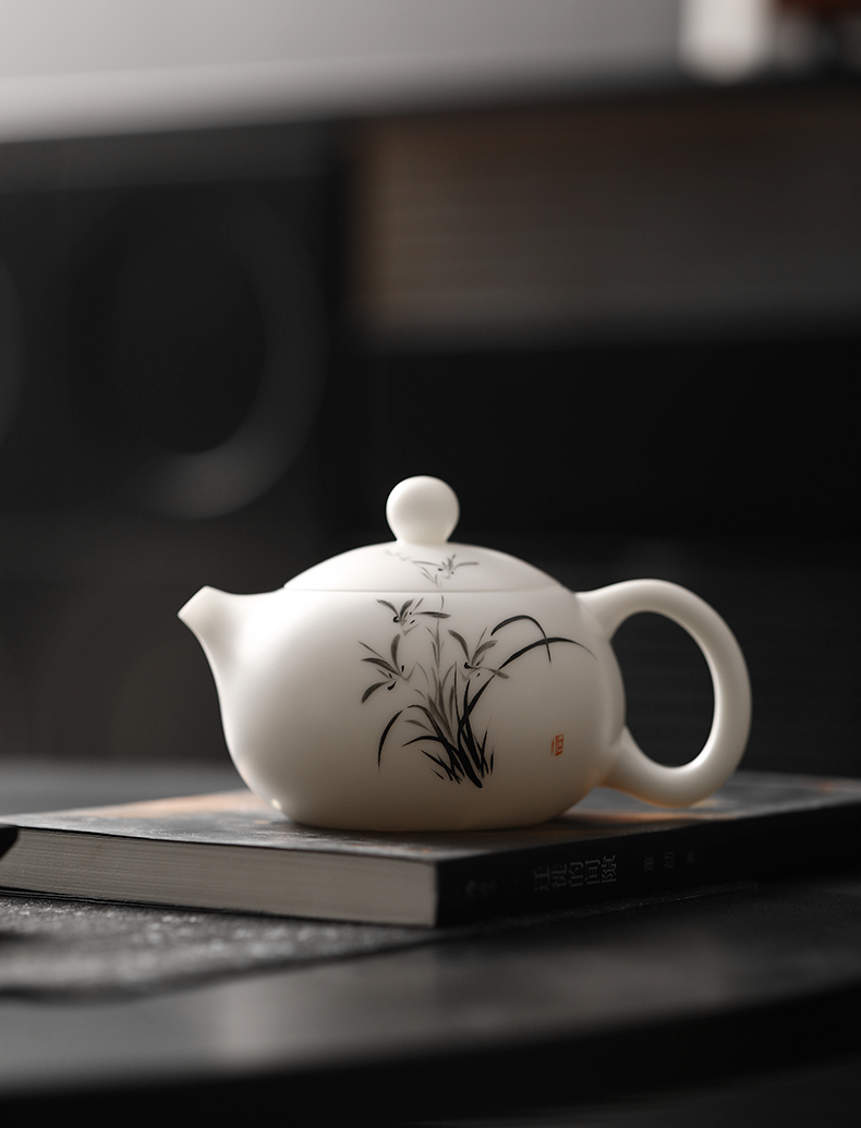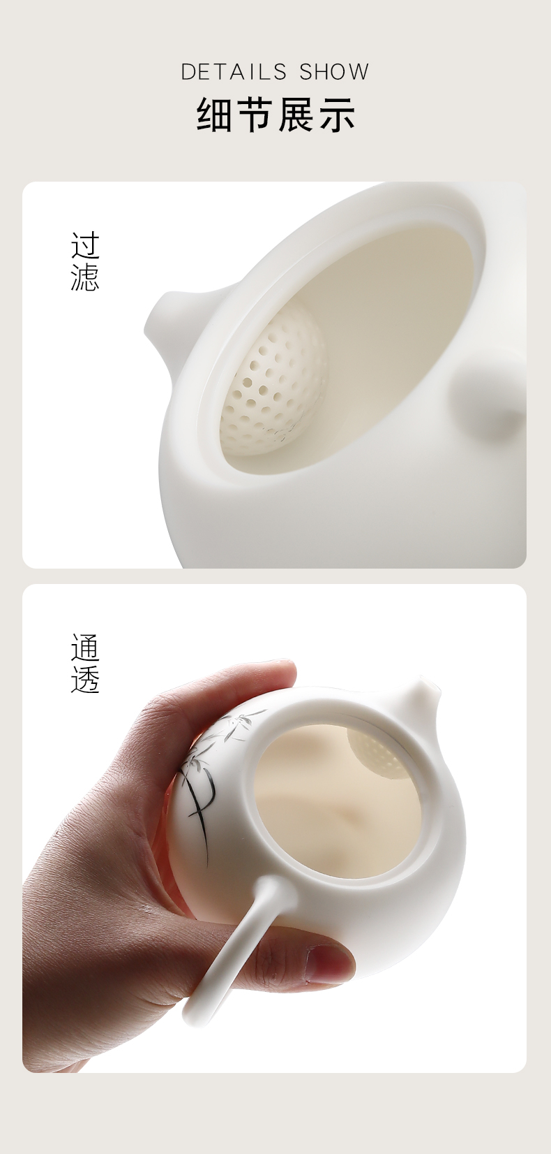 • Hand-painted plain-fired suet jade white porcelain Xishi teapot, single ceramic brewing teapot, high-end gift box for leaders and friends