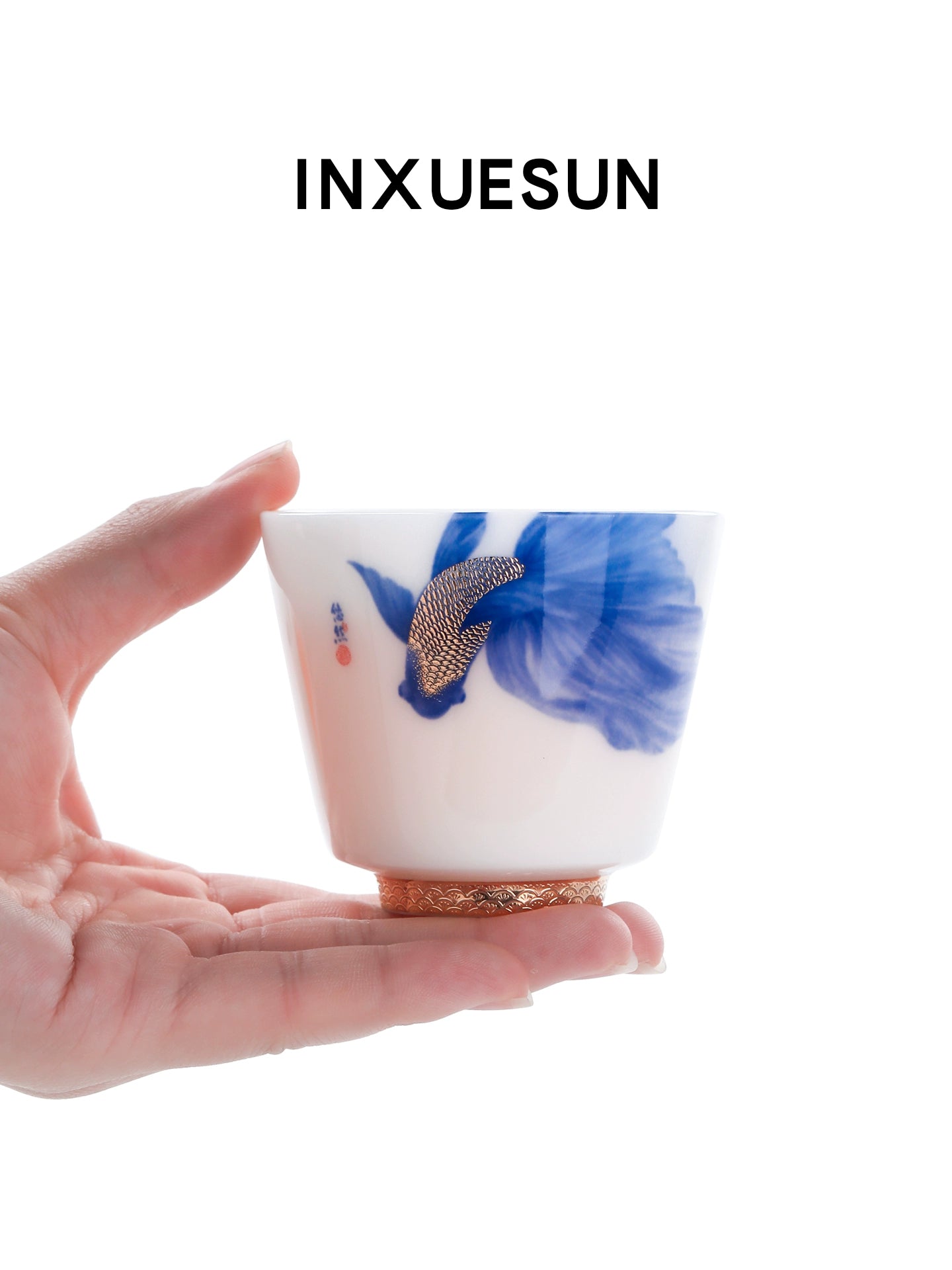 • Ice Jade Porcelain Master Cup High-grade White Porcelain Kung Fu Tea Set Teacup for Teachers' Day Leaders and Friends