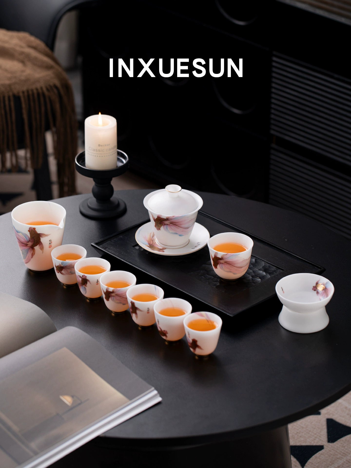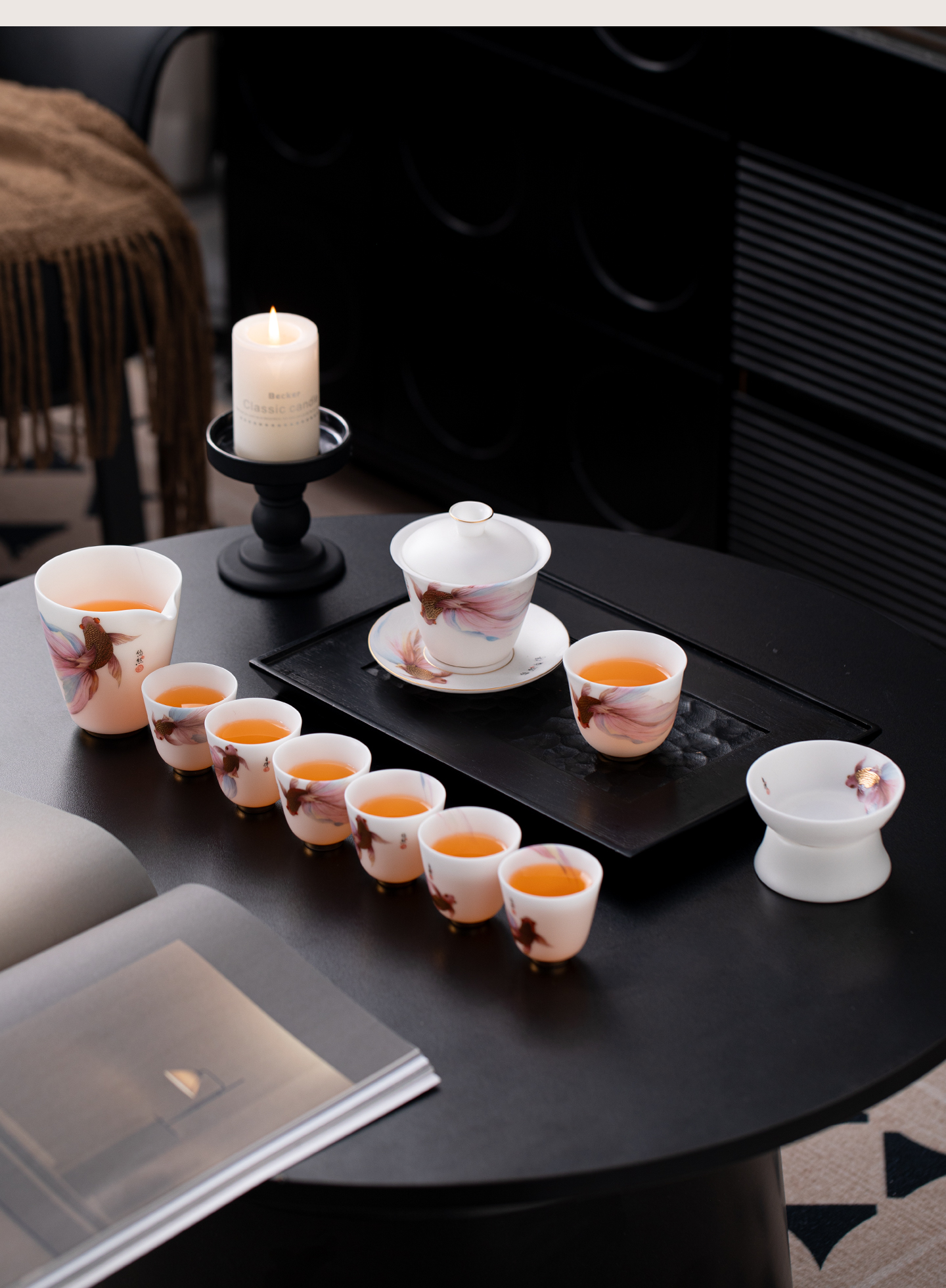 • Suet jade fair cup tea set, high-grade Dehua white porcelain plain burning anti-scalding hand tea sea tea set, tea ceremony tea leak accessories