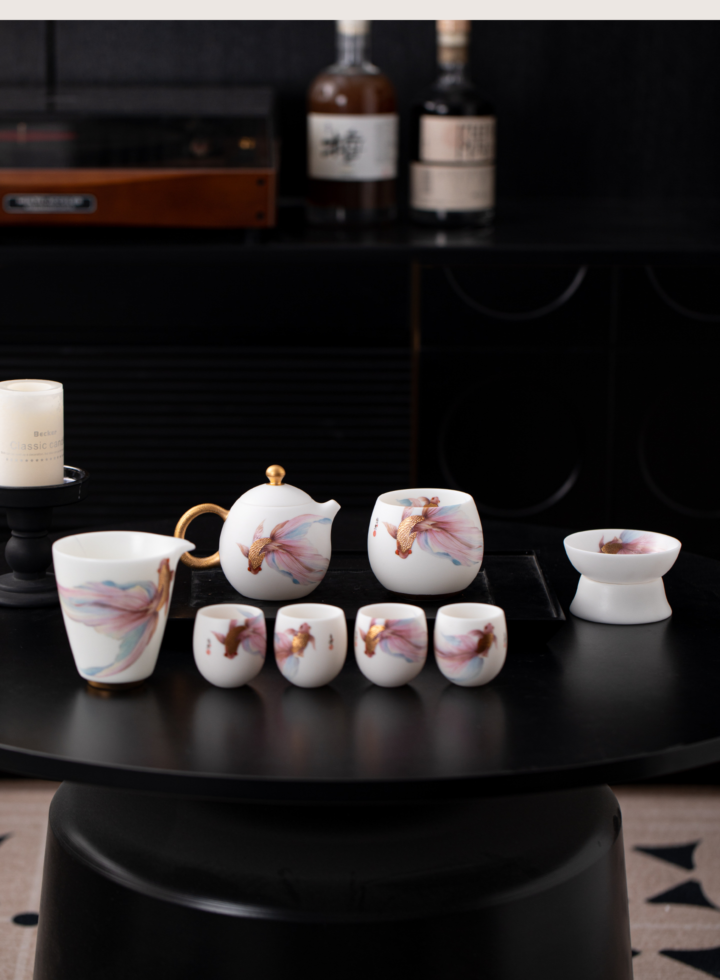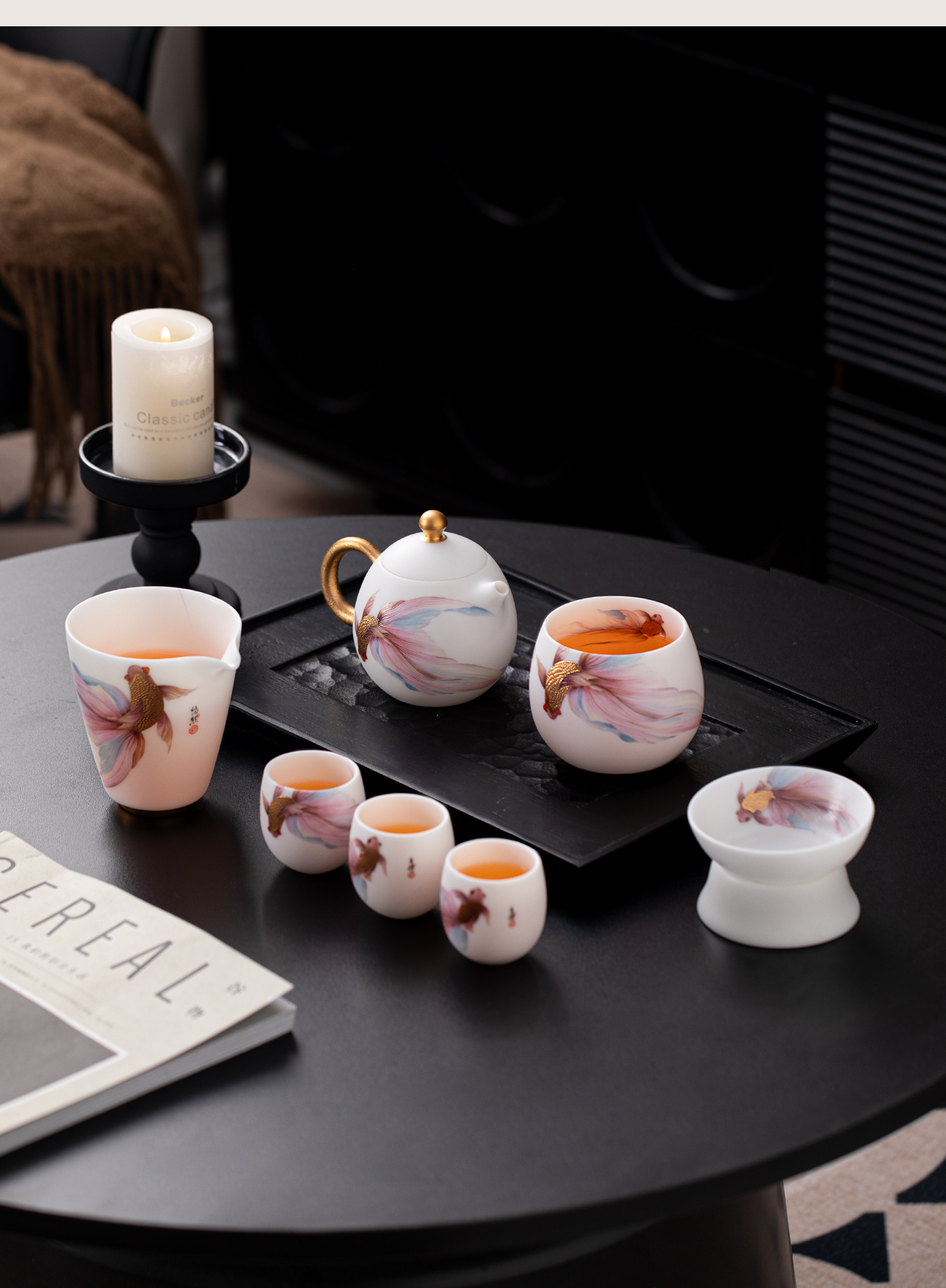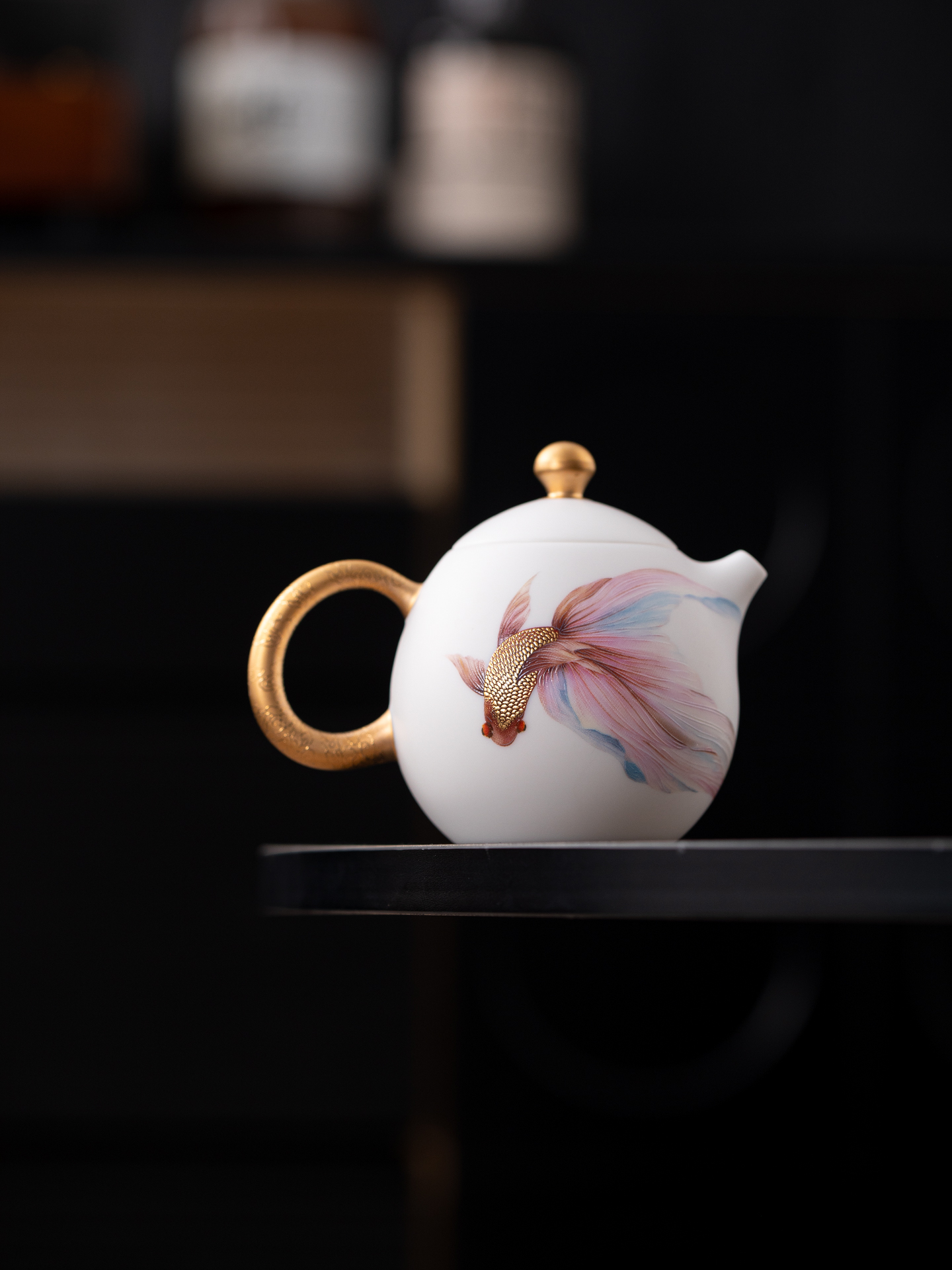 • Suet jade white porcelain dragon egg pot teapot high-end gilt kung fu tea set for elders, teachers and leaders housewarming gift
