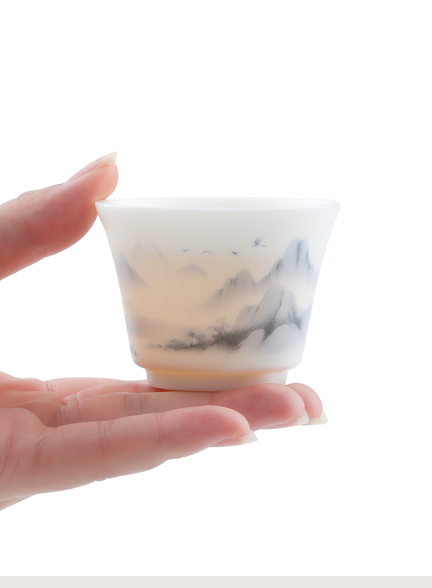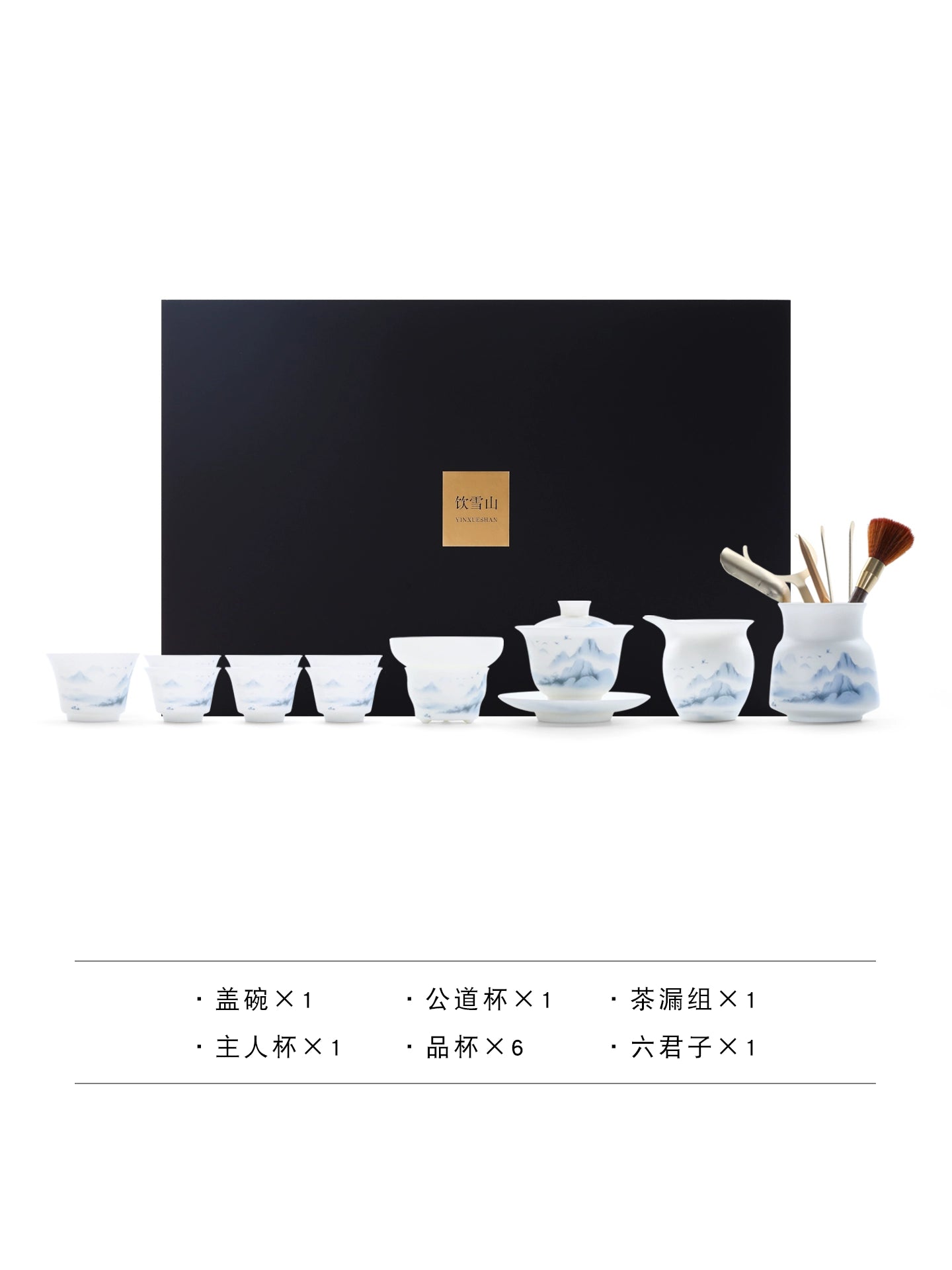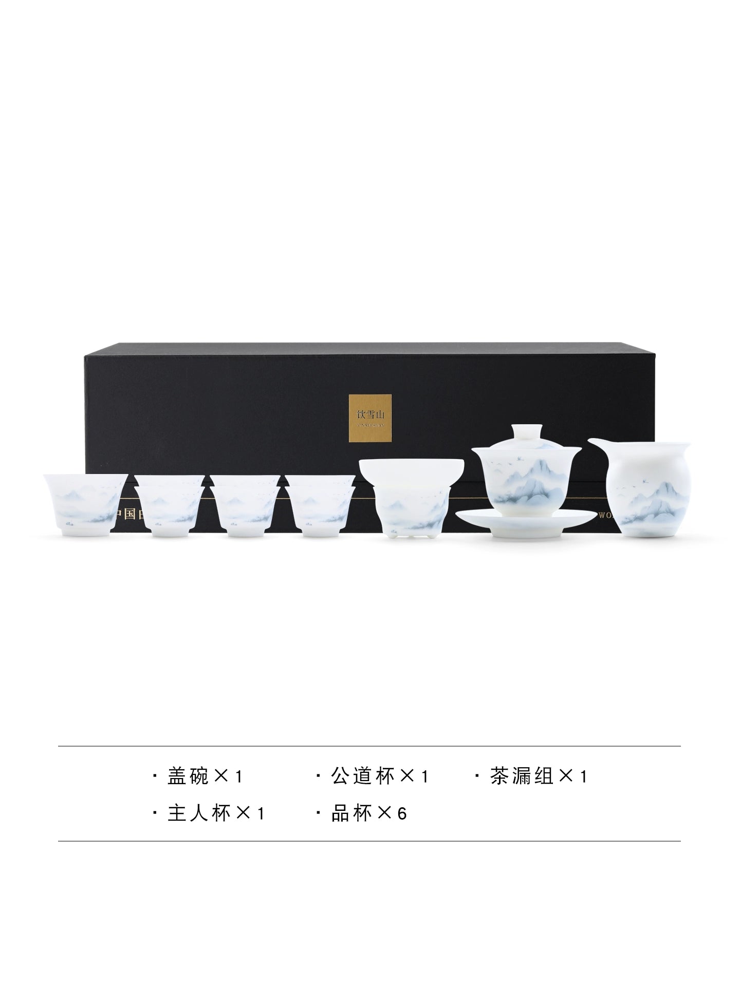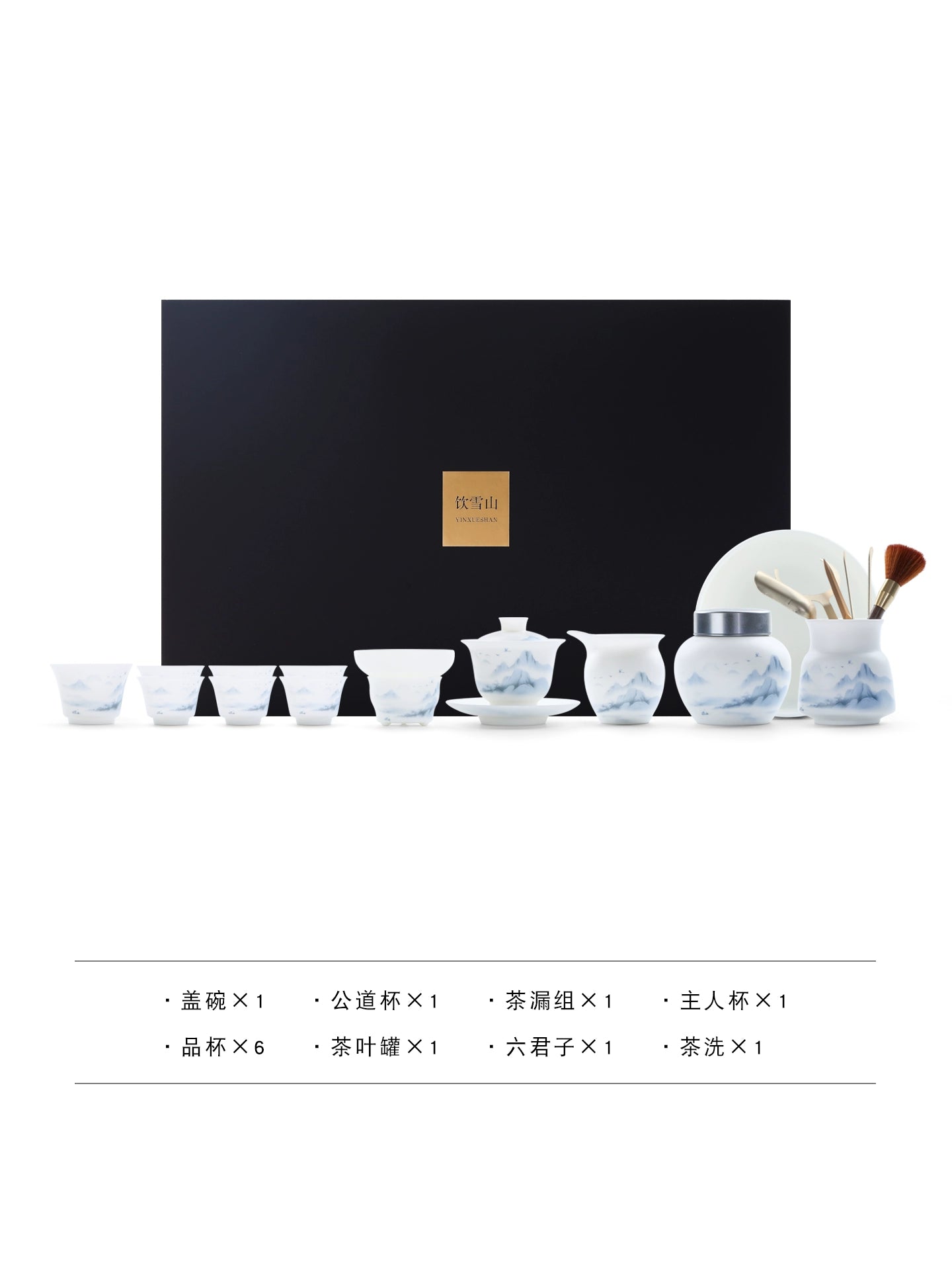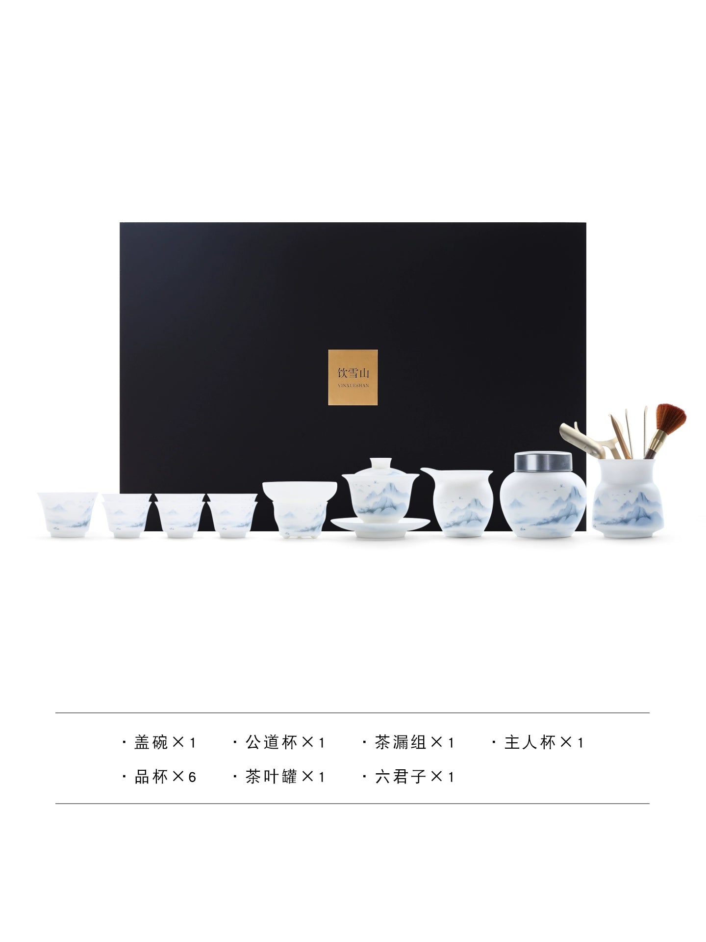 • Vegetarian-fired suet jade porcelain kung fu tea set, home high-end office tea, housewarming gifts for elders and leaders
