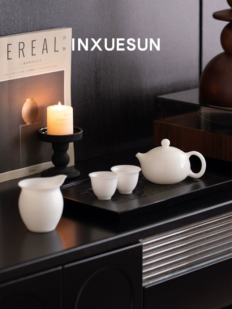 Vegetarian fired thin tire ice jade porcelain Xishi brewing teapot file Dehua white porcelain high-end ceramic tea set gift box