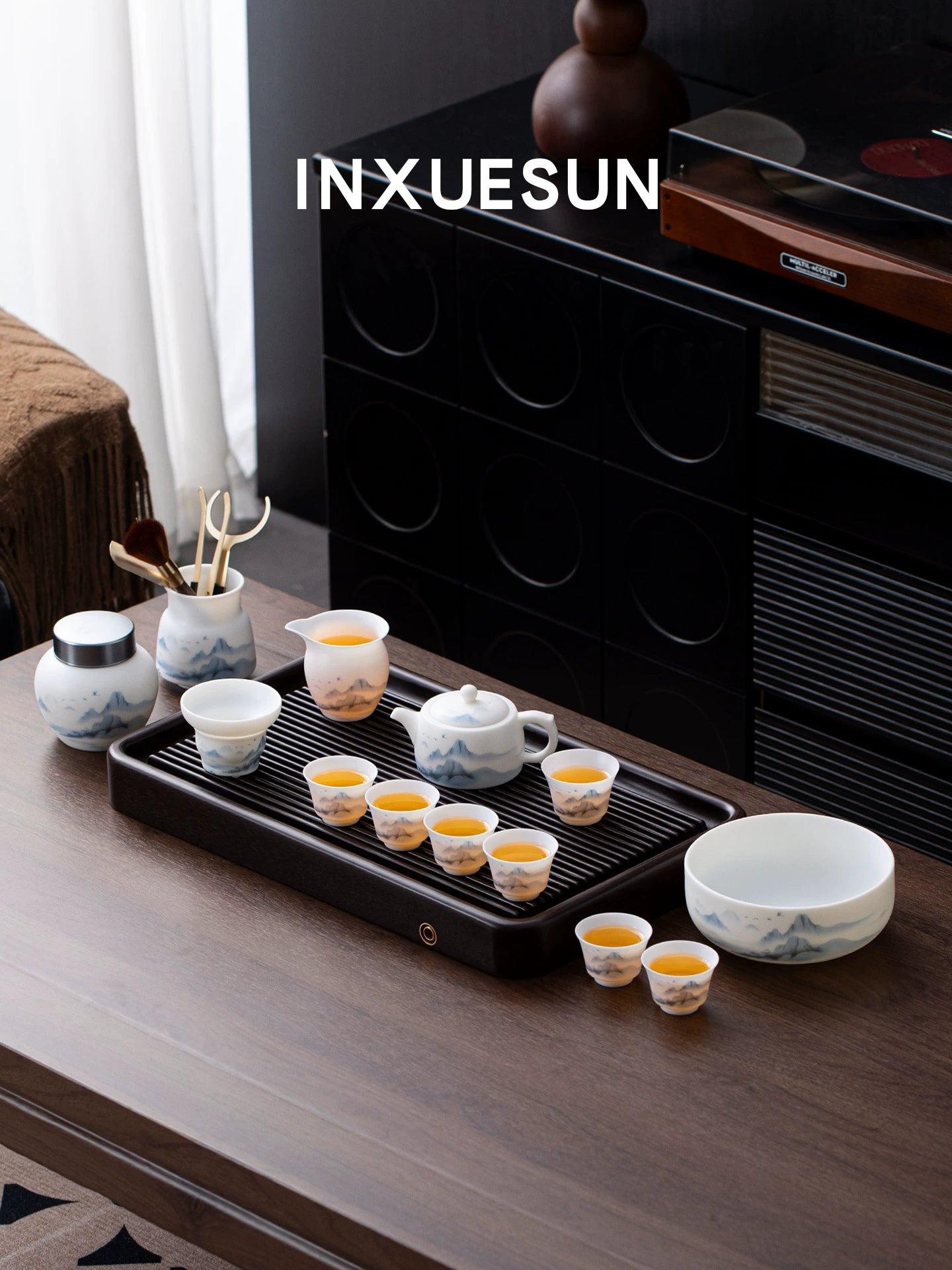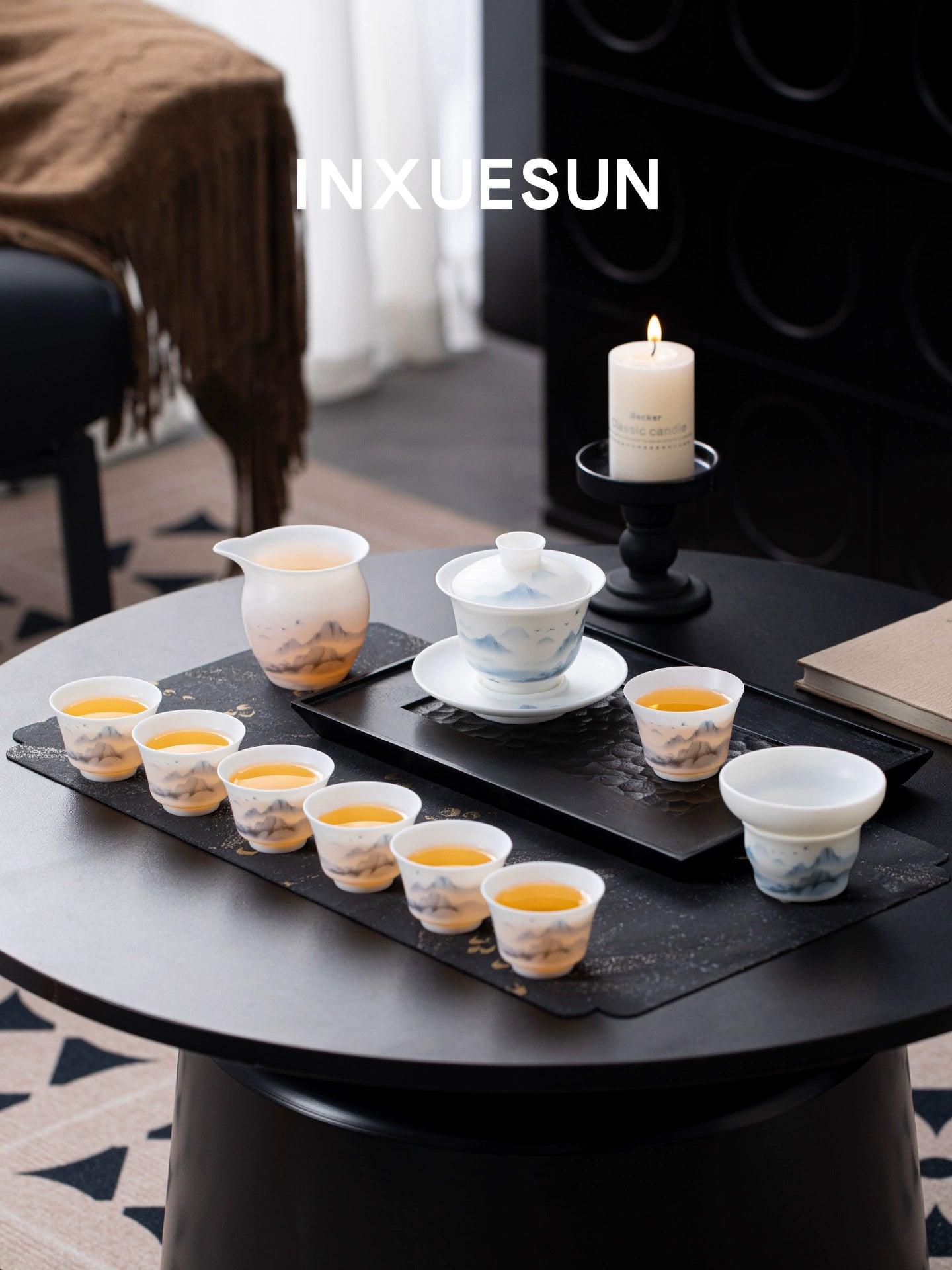 • Vegetarian suet jade porcelain kung fu tea set, high-end Dehua white porcelain home tea set, housewarming birthday gift