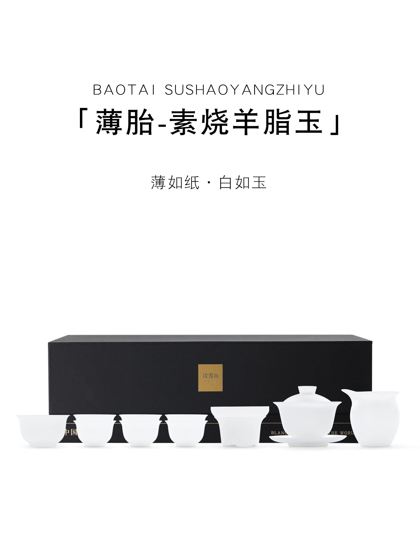 • Ultra-thin fetal plain-fired suet jade porcelain cover bowl teacup Kung Fu tea set set, high-end gift for elders, leaders, friends and teachers