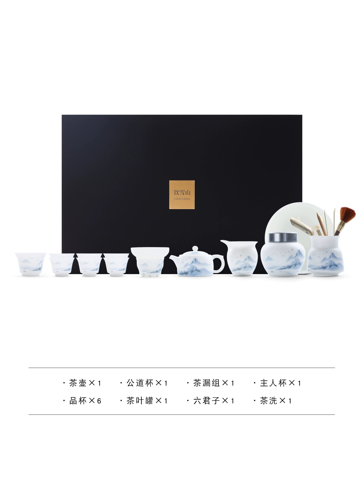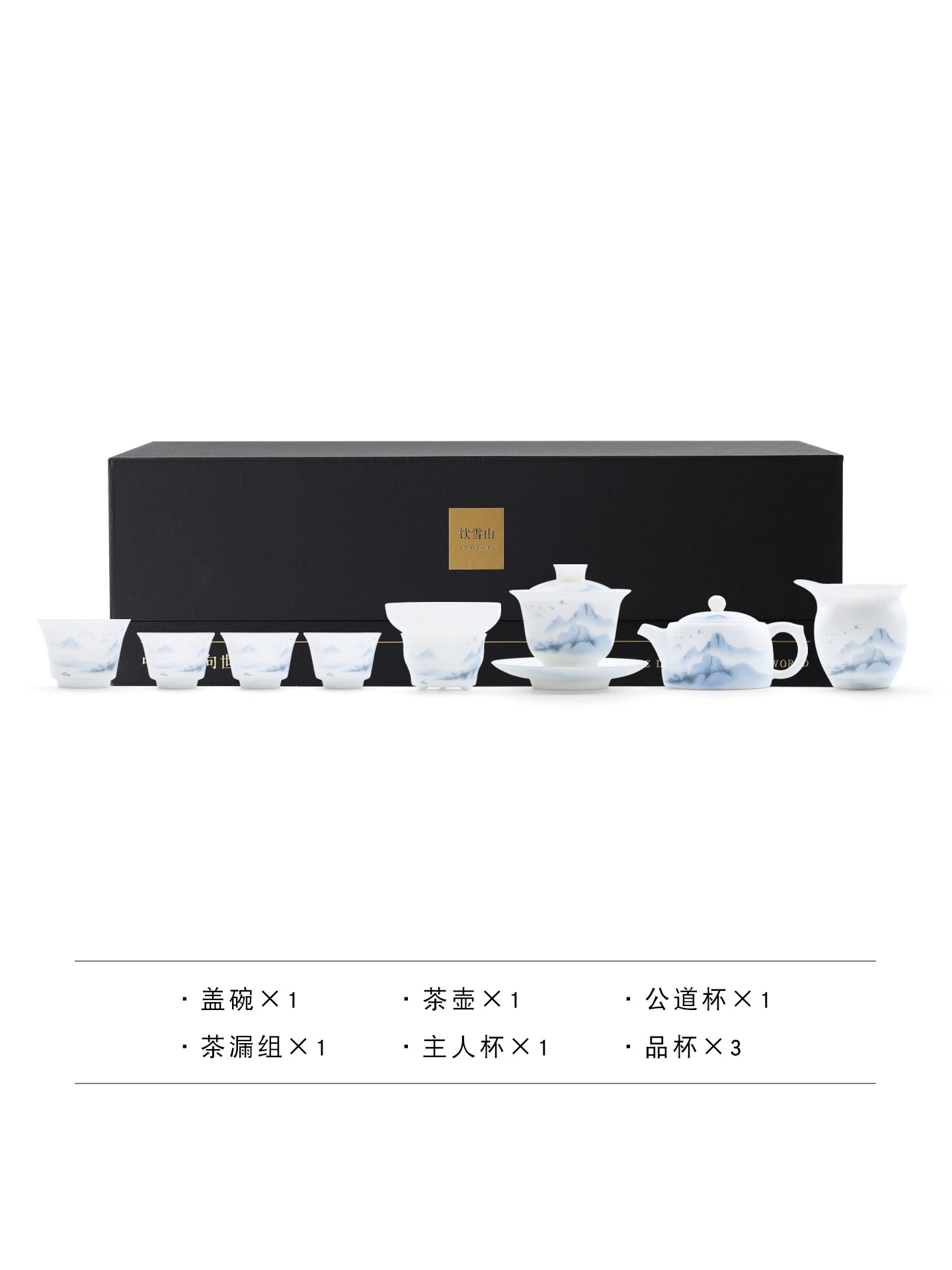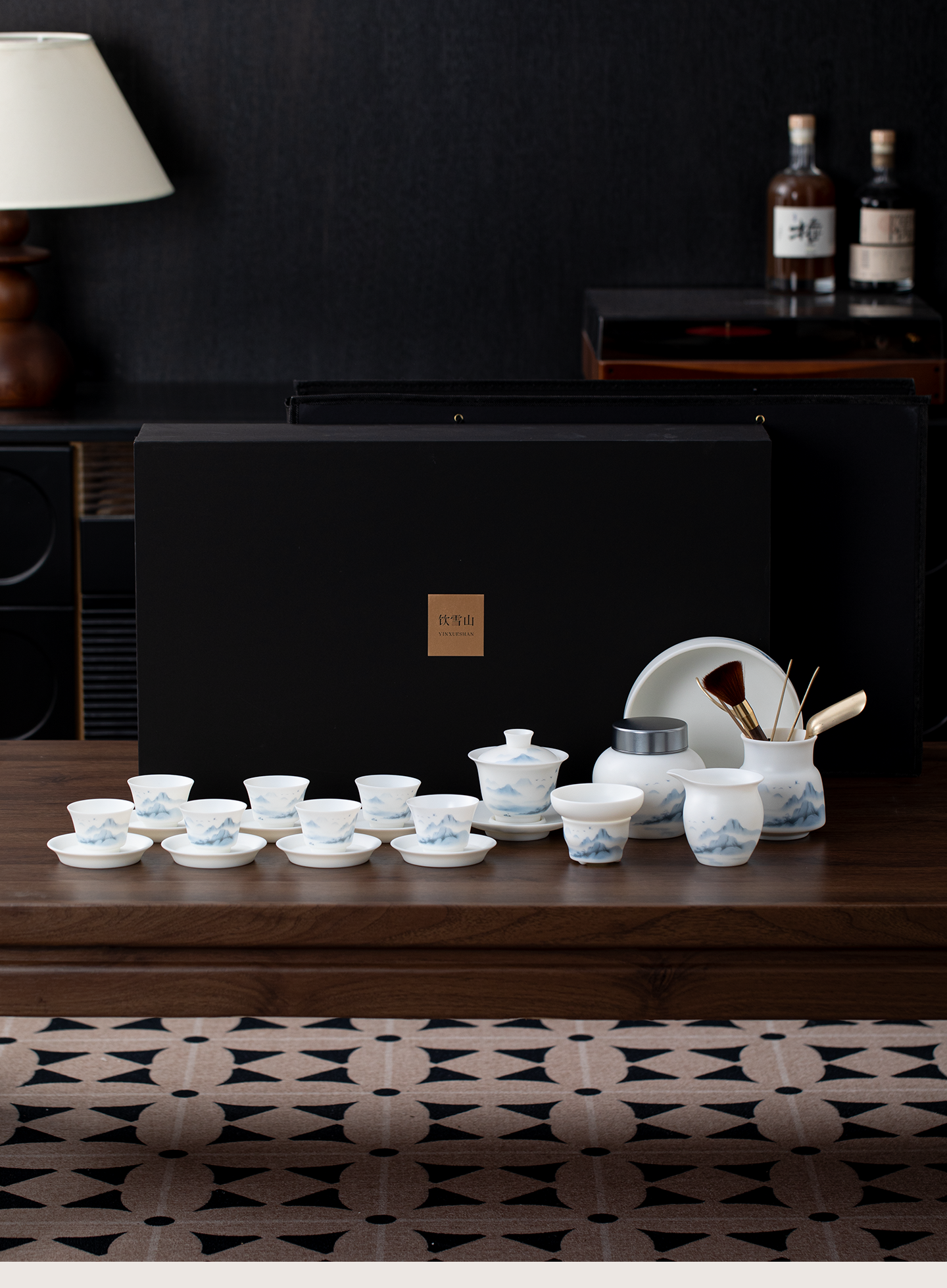 • Vegetarian-fired suet jade porcelain Kung Fu tea set, high-end home living room office teapot set, Dehua white porcelain