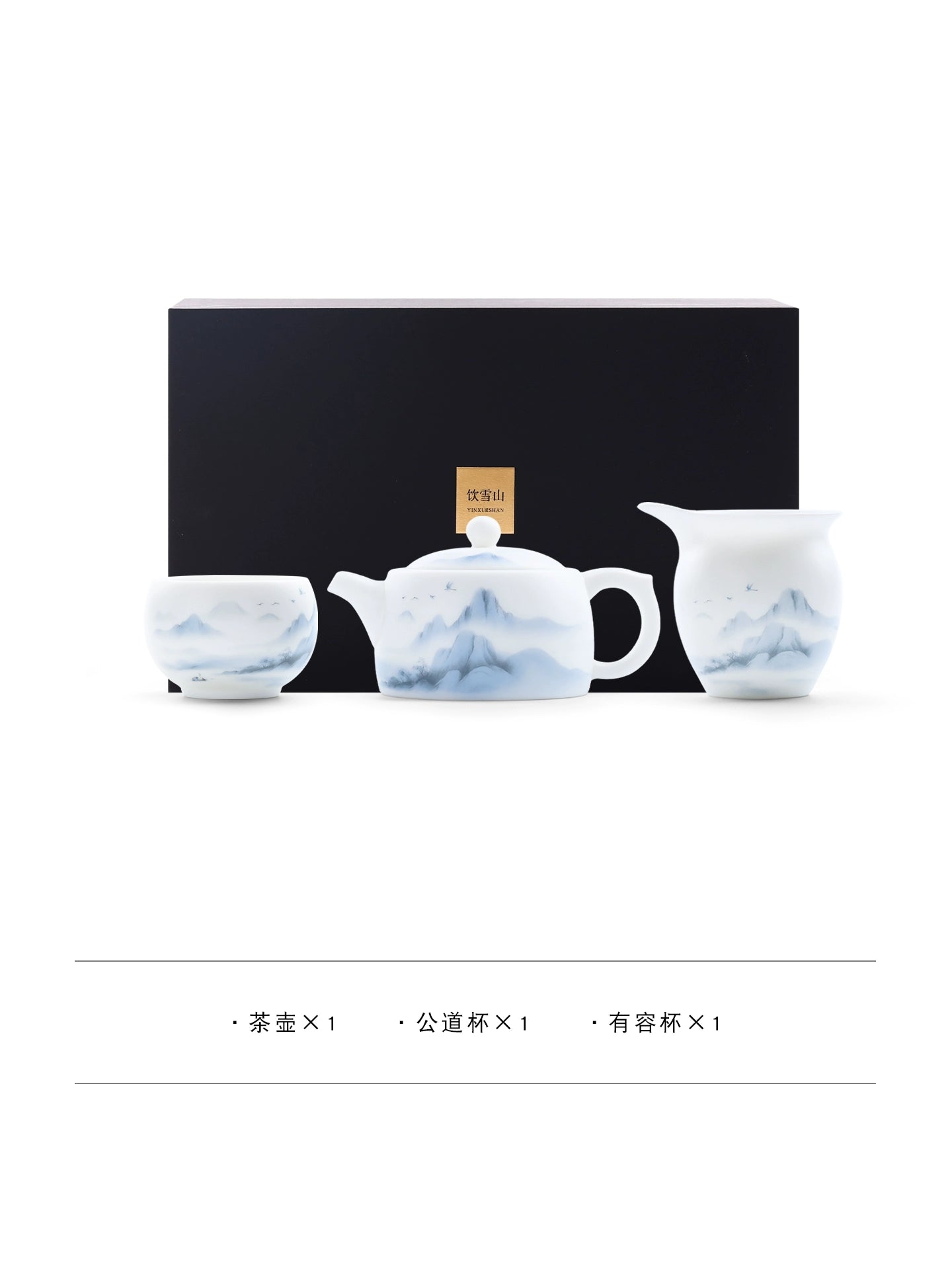 Vegetarian-fired suet jade porcelain Kung Fu tea set, high-end home living room office teapot set, Dehua white porcelain