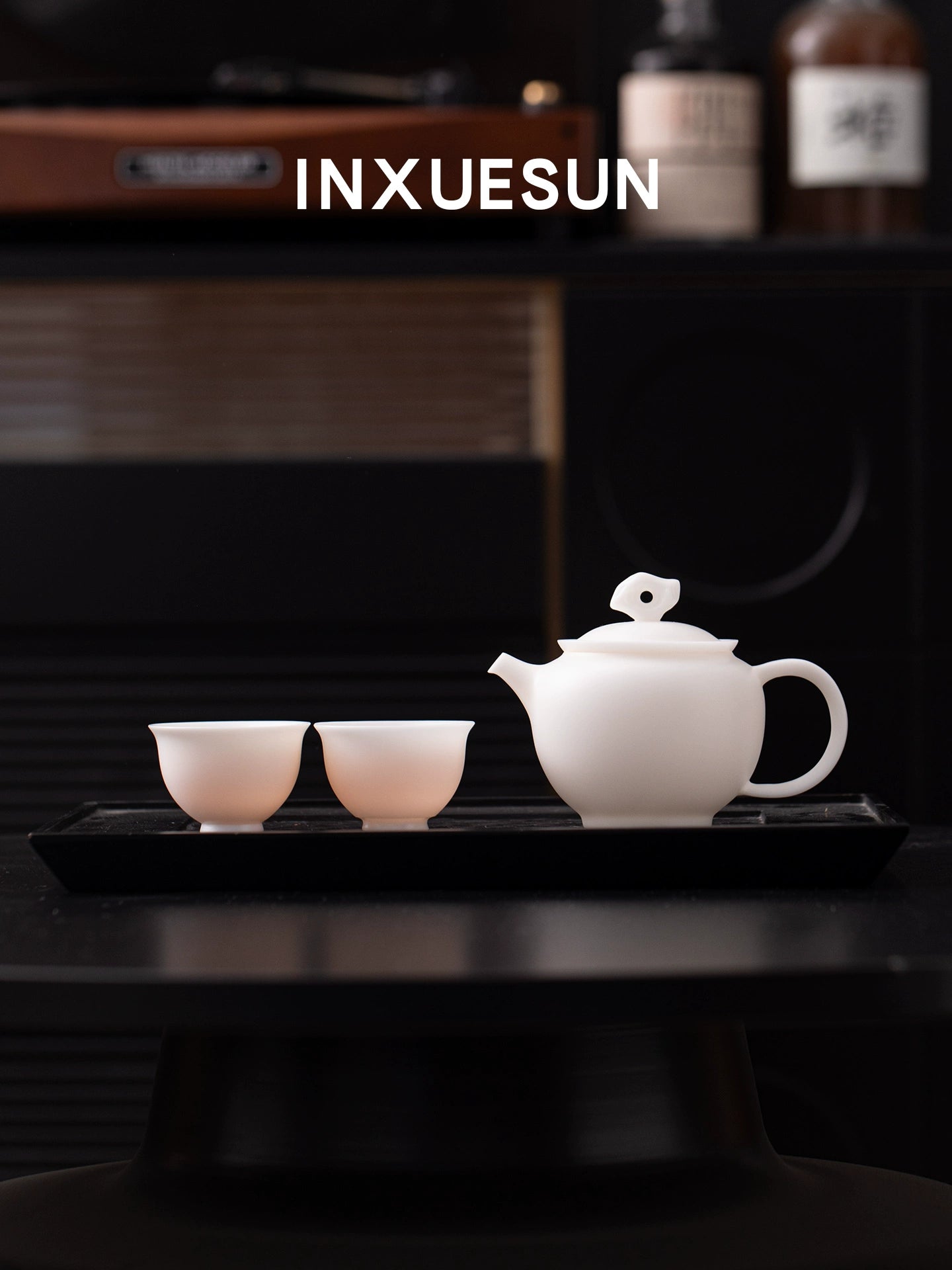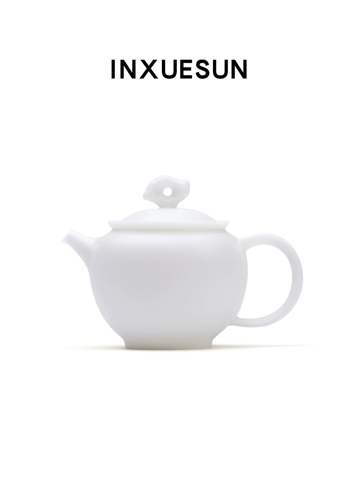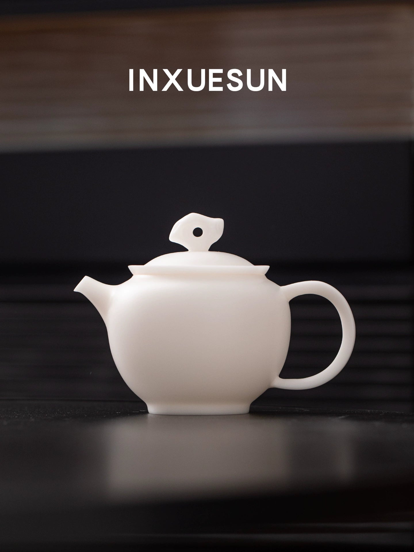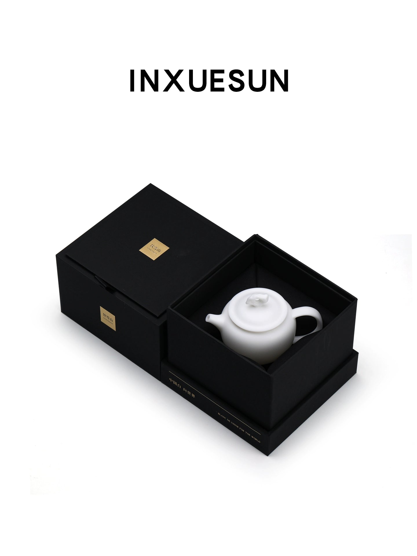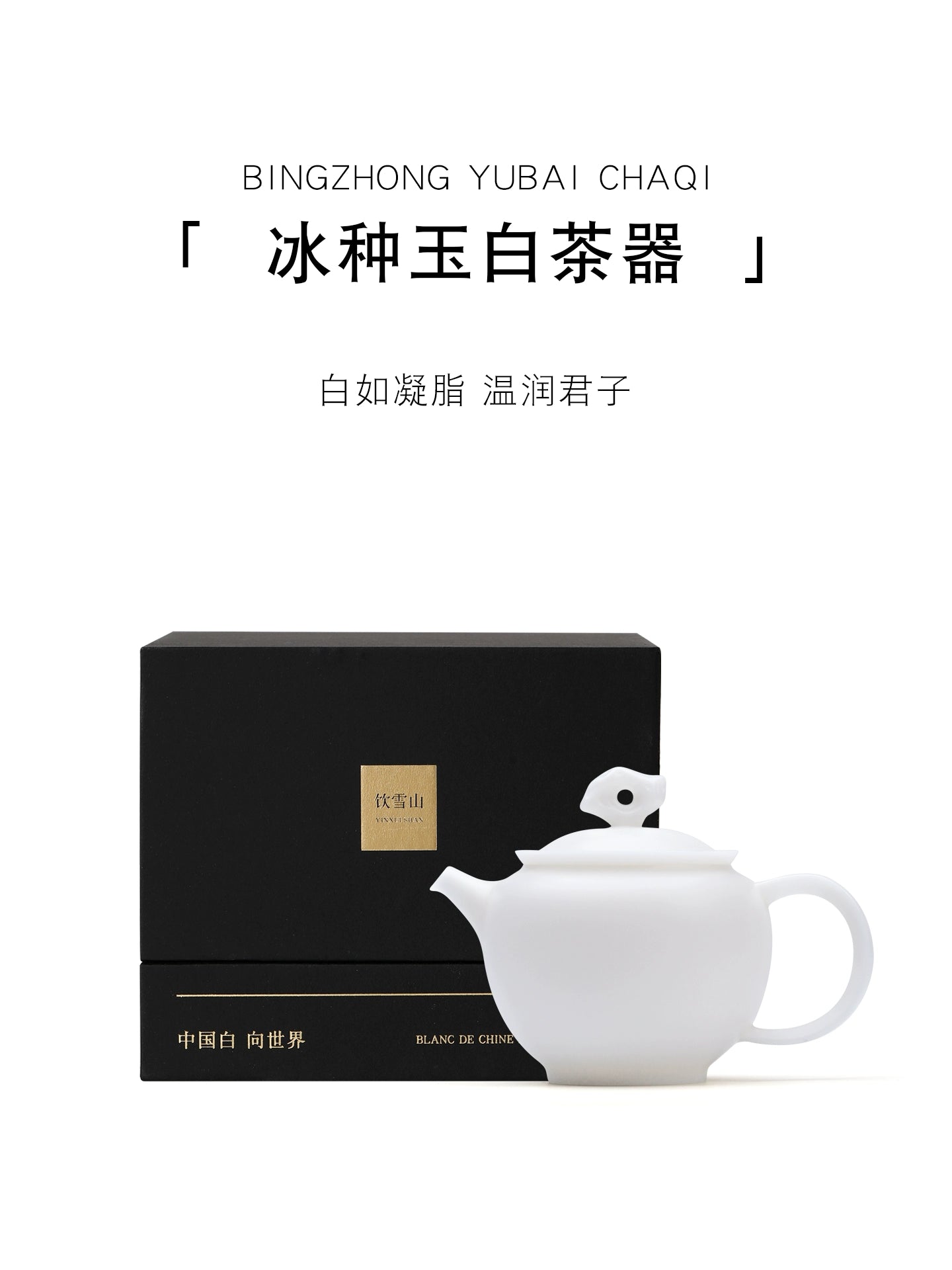 • Plain-fired ice jade white porcelain "Qishi" teapot, a single high-end Kung Fu ceramic tea set, tea gift box for gifts