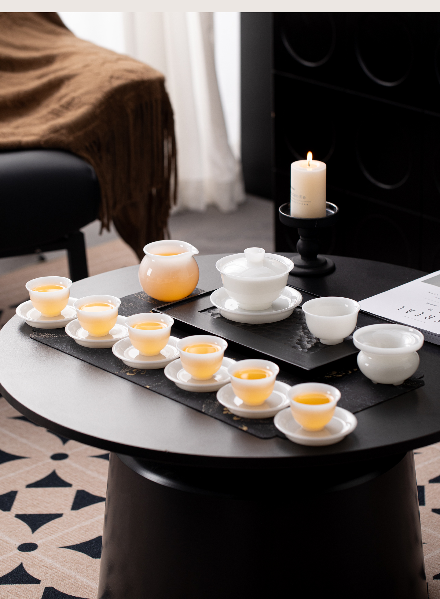 • Pu jade ice jade porcelain three talents cover bowl teacup, a single high-end Dehua Kung Fu tea set for teachers, leaders and elders