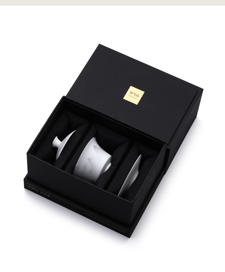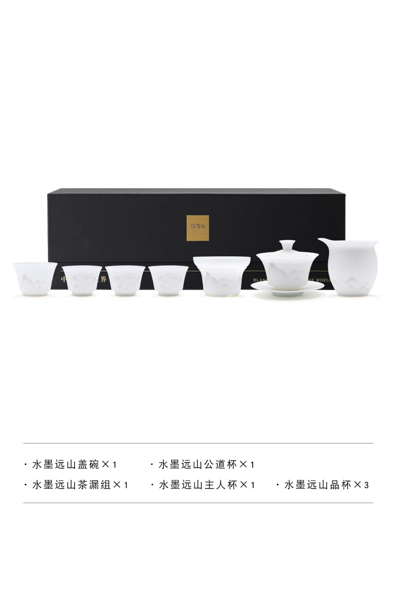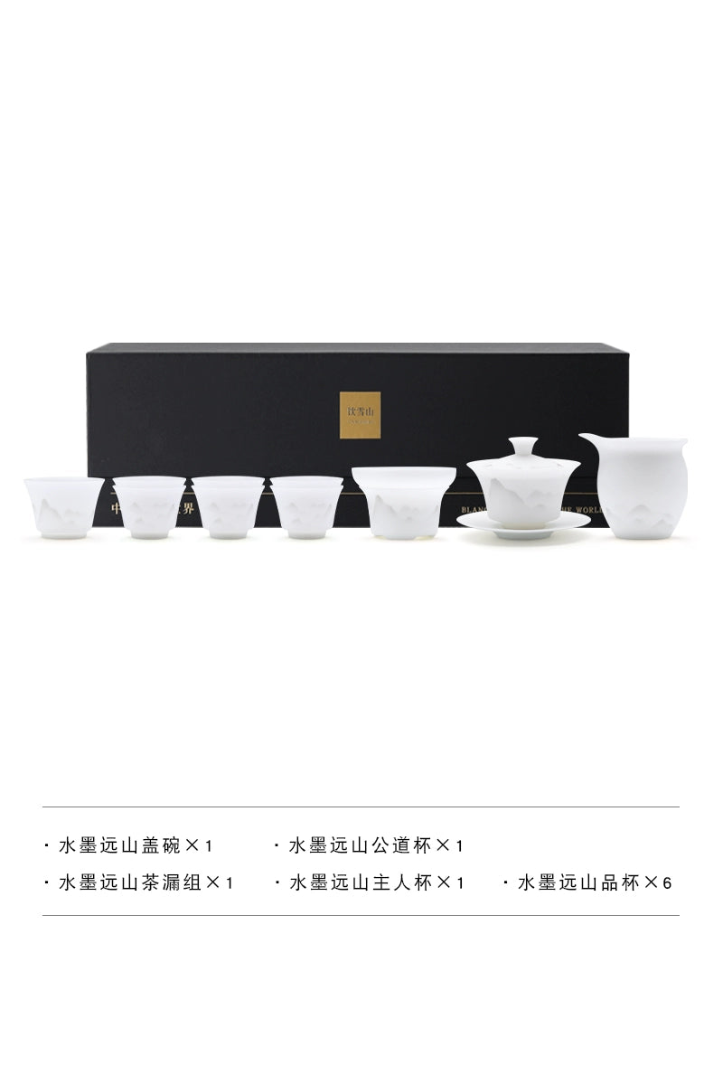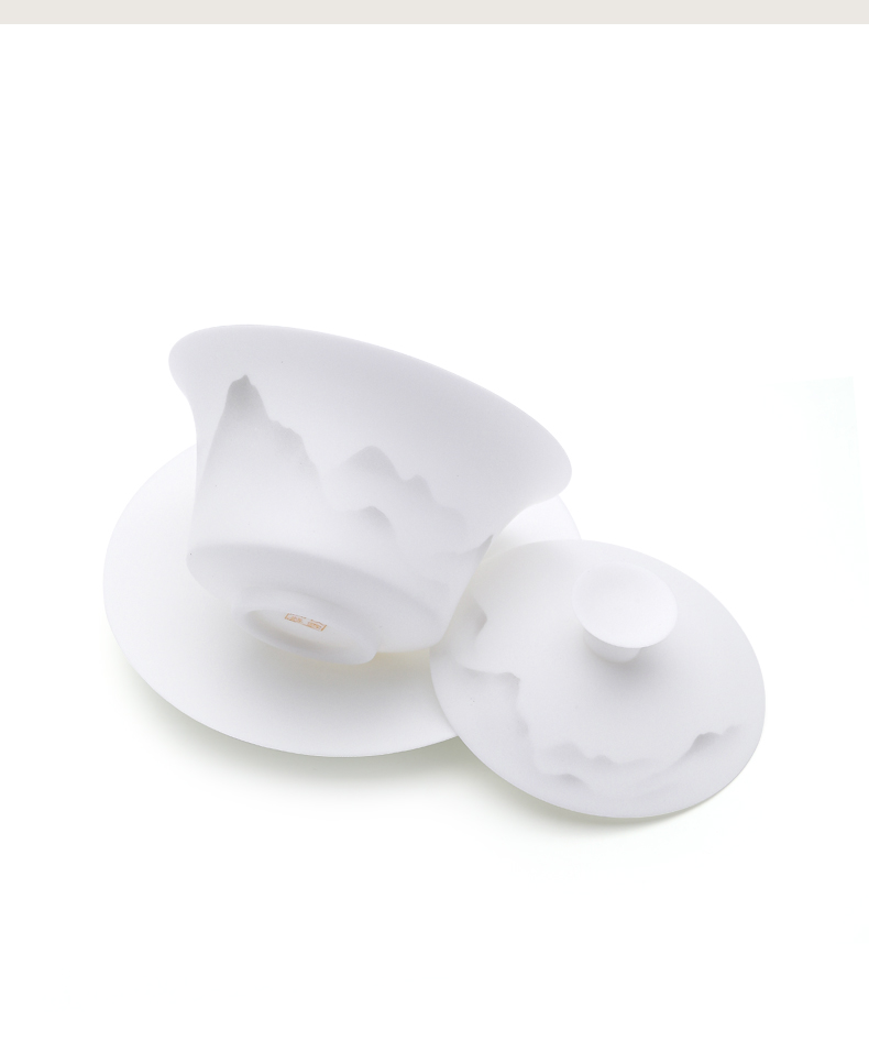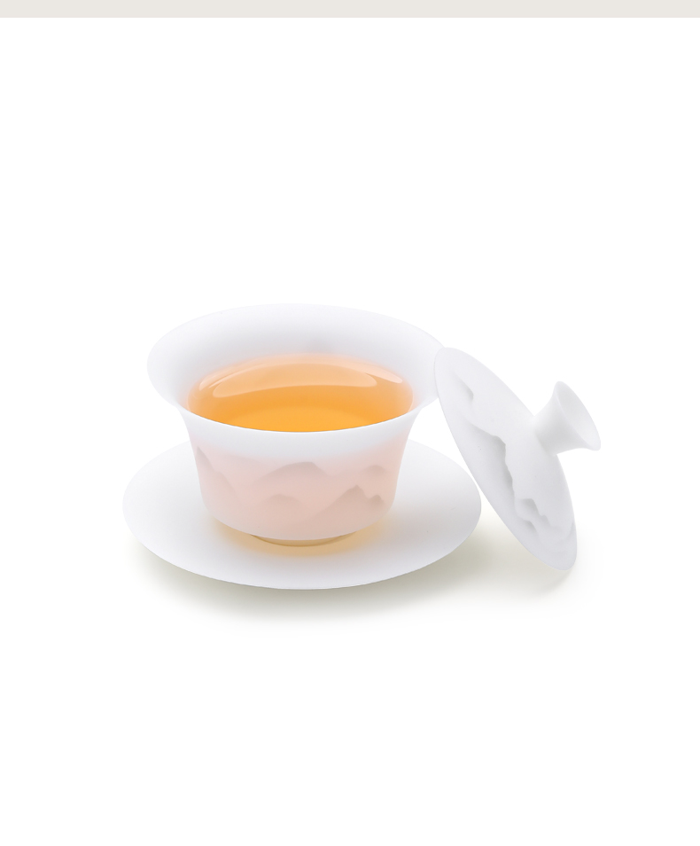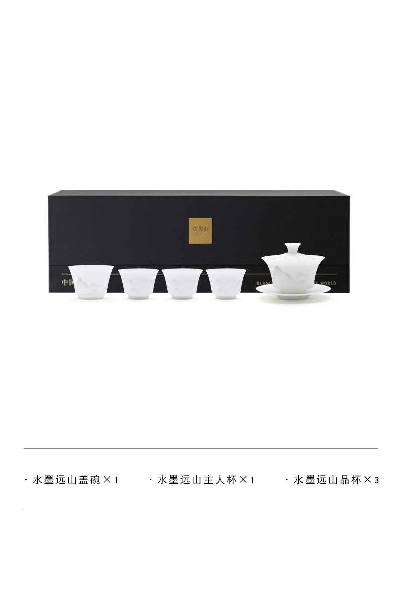 • Thin tire suet jade white porcelain "Yuanshan" three talents cover bowl teacup set, a single high-end kung fu tea set is not hot to make